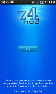 С помощью z4root можно без проблем сделать рут для вашего смартфона на Android OS. Для этого нужно зайти в Настройки-Приложения-Разработка и включить режим отладки, потом скачать программу, установить, запустить ее и нажать одну кнопку. После этого телефон перезагрузится и у вас уже открыт полный доступ к системным файлам. Операция полностью безопасна. Программа работает почти на всех Android устройствах. Вот список поддерживаемых смартфонов: Samsung Galaxy S (все версии) Motorola Backflip Sony Ericsson X10 Sony Ericsson Xperia Mini Droid 2 Galaxy Ta